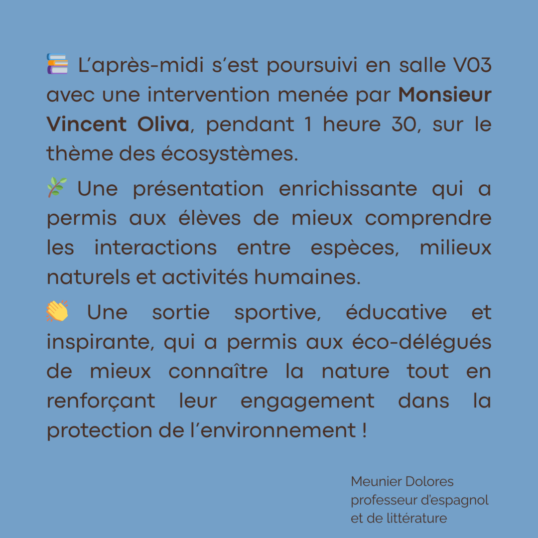 - La sortie scolaire mensuelle des éco-délégués : - 3 novembre 2025