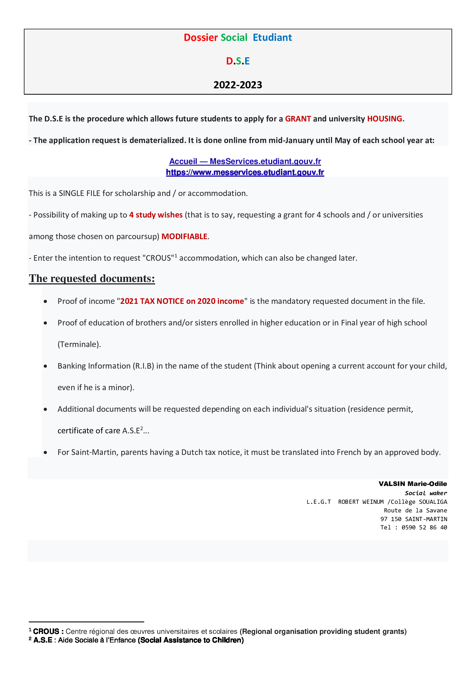 Téléphone : 0590528640 (standard)
